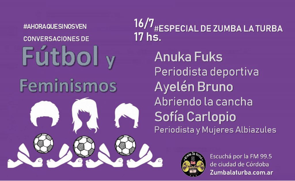 En un nuevo programa especial de radio Zumba la turba, nos proponemos conversar sobre Fútbol y feminismos con algunas de sus protagonistas. Desde los estudios y en una conversación amena nos acompañan Anuka Fuks – Periodista deportivaAyelén Bruno – Futbolista e integrante de Abriendo La CanchaSofía Carlopio – Periodista deportiva e integrante de E.M.A Escuchá […]